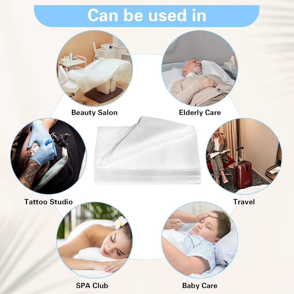Non-Woven Fabric Disposable Bedsheet For Salon, Spa, Parlor, Massage Table, Travel, Hotels (White, 31×71 Inch) 30 GSM Pack of 50 pcs